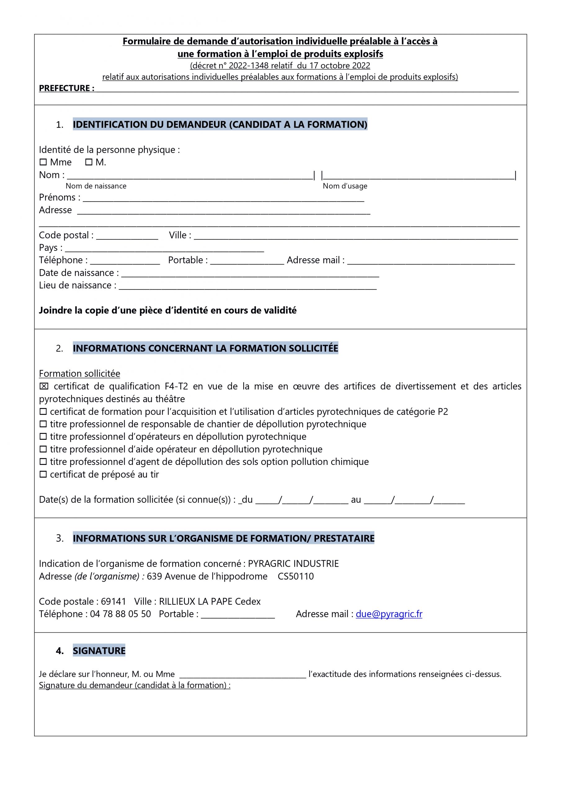 Téléchargez le « Formulaire de demande d’autorisation individuelle » ci-dessous, complétez-le puis envoyez-le à votre préfecture.