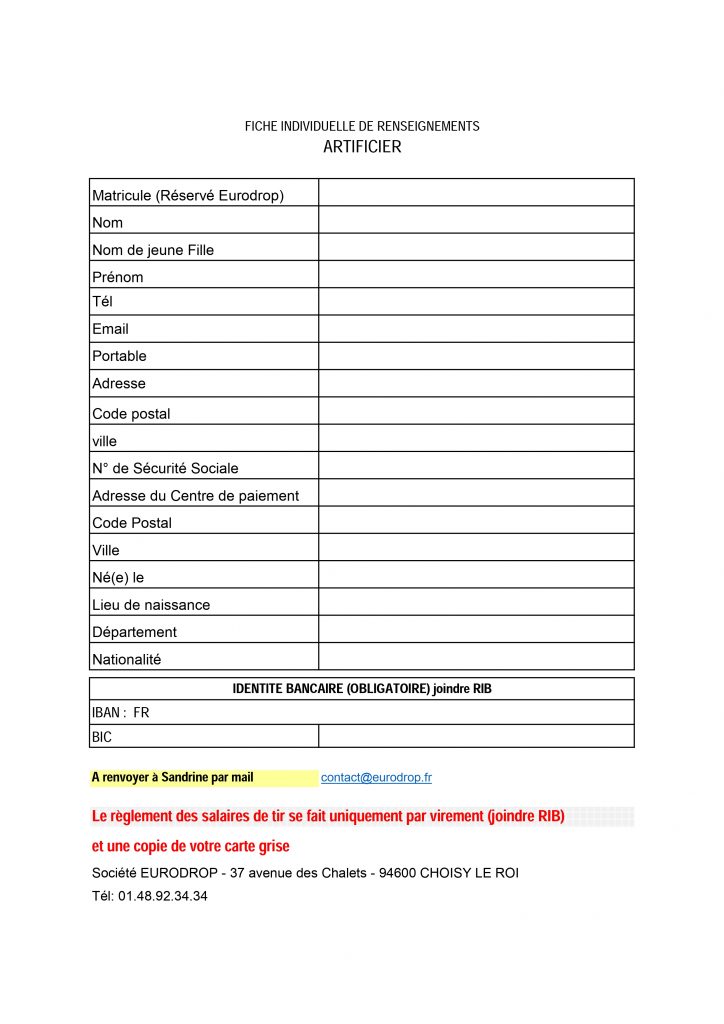 Téléchargez la « Fiche individuelle de renseignements », complétez-le puis renvoyez-le à : contact@eurodrop.fr